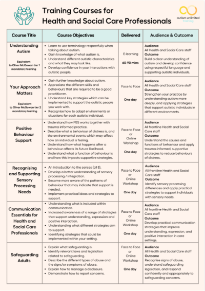 - Understanding Autism: Designed to increase awareness of autism and appreciate sensory differences, to develop a greater understanding of how to engage with autistic individuals.
